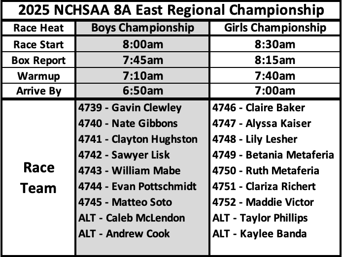 Other Regionals are at WakeMed Saturday. Traffic could be a little crazy leaving the meet.