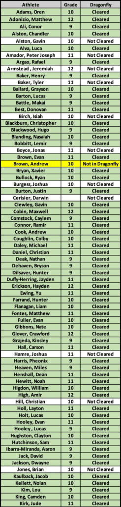 If you do not see your name on this list, then you are not appearing in Dragonfly for 2025-2026 Indoor Track & Field.