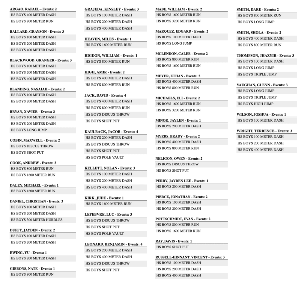 Field Events begin at 3:30pm