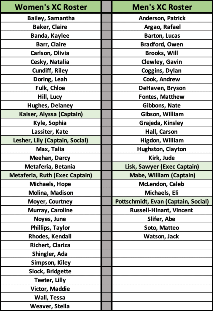 This is the 2025 LRHS Cross Country Roster
