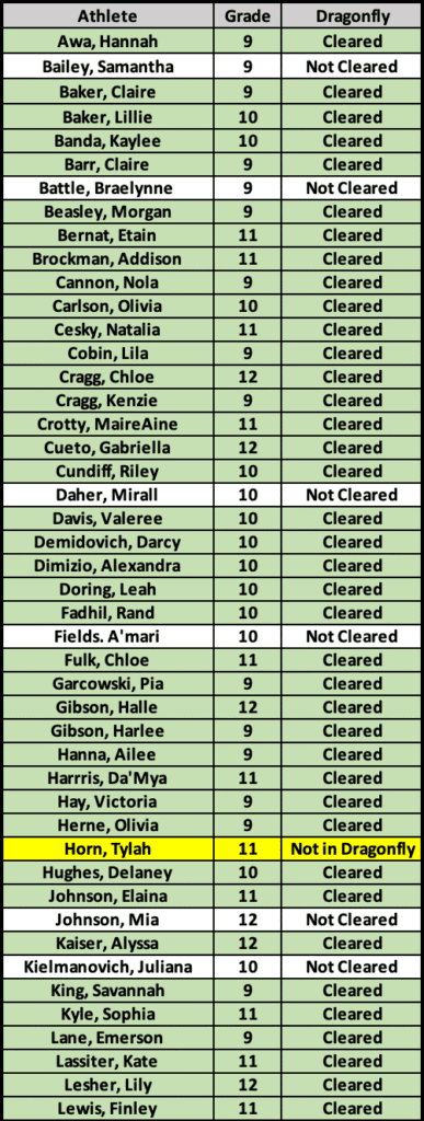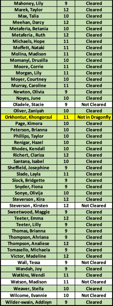 If you do not see your name on this list, then you are not appearing in Dragonfly for 2025-2026 Indoor Track & Field.