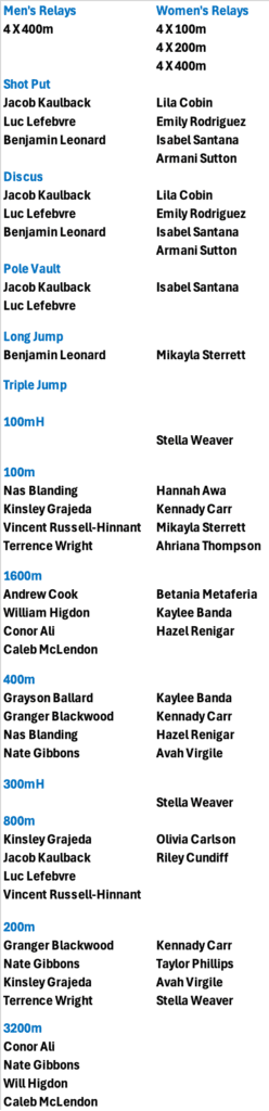 Meet is rolling schedule. See events order below.